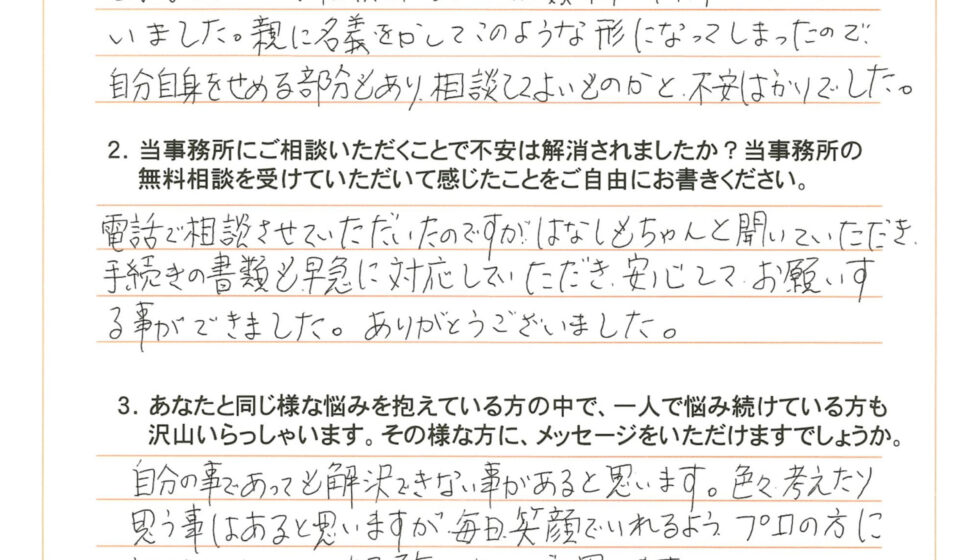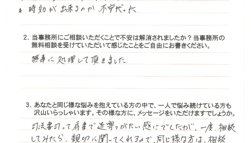 ご依頼者様から「ありがとう」「おかげで気分が軽くなったよ」と声を掛けていただけた時、私は司法書士として強い喜びと達成感を感じます。