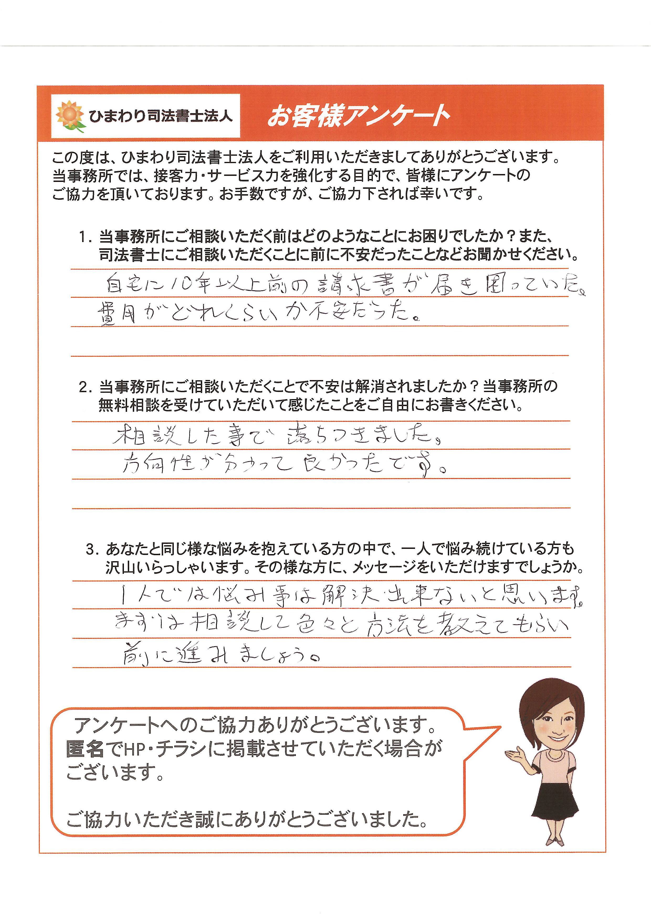先日、自己破産についてお電話での無料相談をさせていただき、そのままご依頼することにいたしました。